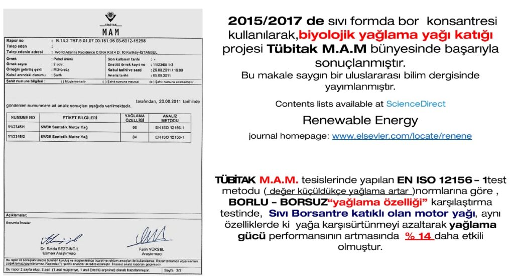 BOR içeriikli metalize, makine ve motor yağlarına olan ihtiyacın varlığı, ilgili alanda teknik bir çalışma yapmayı gerekli kılmıştır.